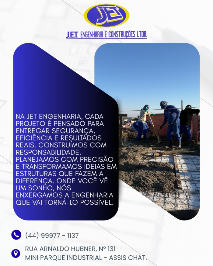 Jet Engenharia – construindo com responsabilidade e solidez para transformar ideias em grandes realizações.